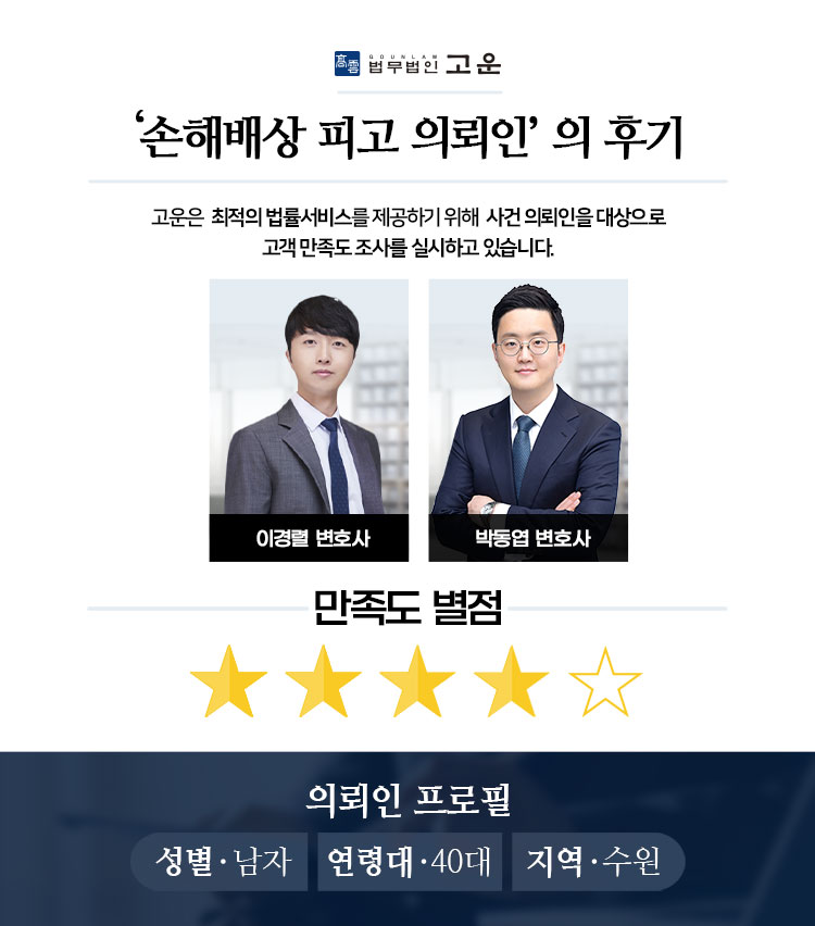 변호사님께서 열정적으로 사건에 임해주시는 모습에 마음을 놓을 수 있었습니다.”