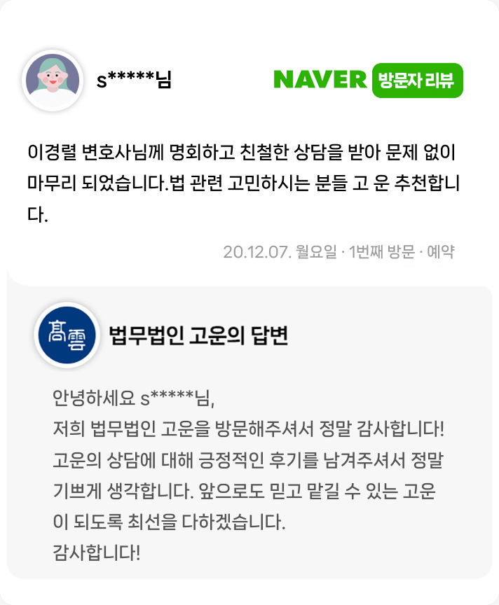 이경렬 변호사님께 명회하고 친철한 상담을 받아 문제 없이 마무리 되었습니다.