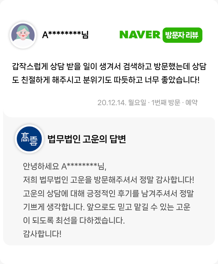 법률 상담은 얼굴을 마주하고 이야기할 때 숨겨진 사실도, 말하지 못한 감정도 함께 풀어낼 수 있습니다. 당신의 이야기를 제대로 듣기 위해 고운은 방문 상담을 원칙으로 합니다 홈페이지에서 편하게 예약하실 수 있습니다.