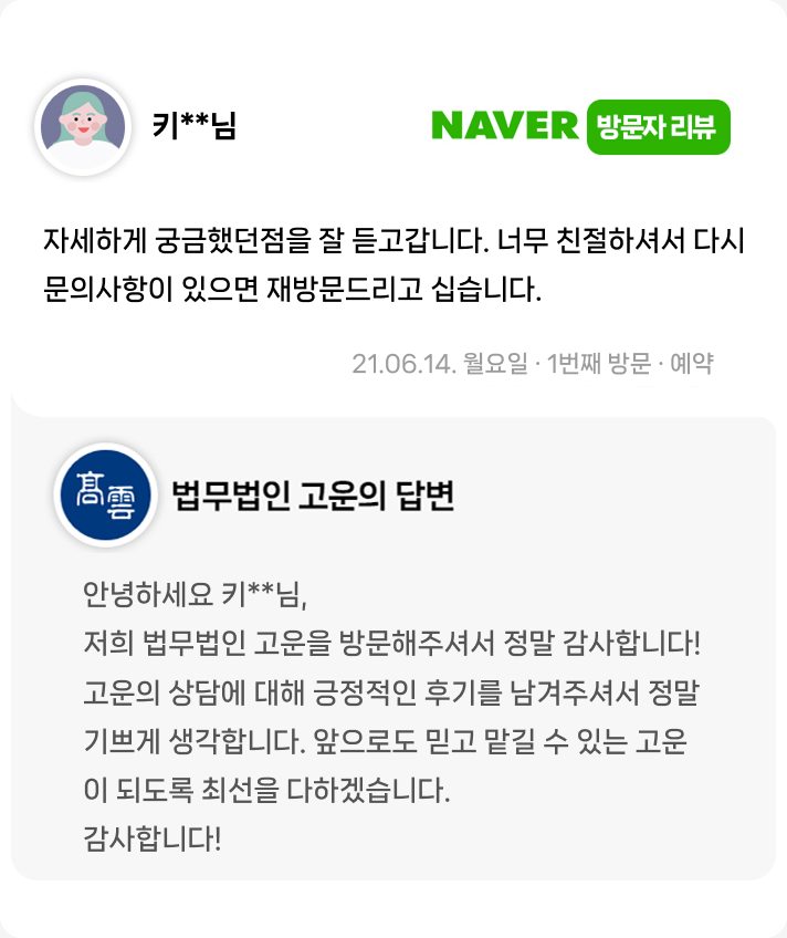 법률 상담은 얼굴을 마주하고 이야기할 때 숨겨진 사실도, 말하지 못한 감정도 함께 풀어낼 수 있습니다. 당신의 이야기를 제대로 듣기 위해 고운은 방문 상담을 원칙으로 합니다 홈페이지에서 편하게 예약하실 수 있습니다.