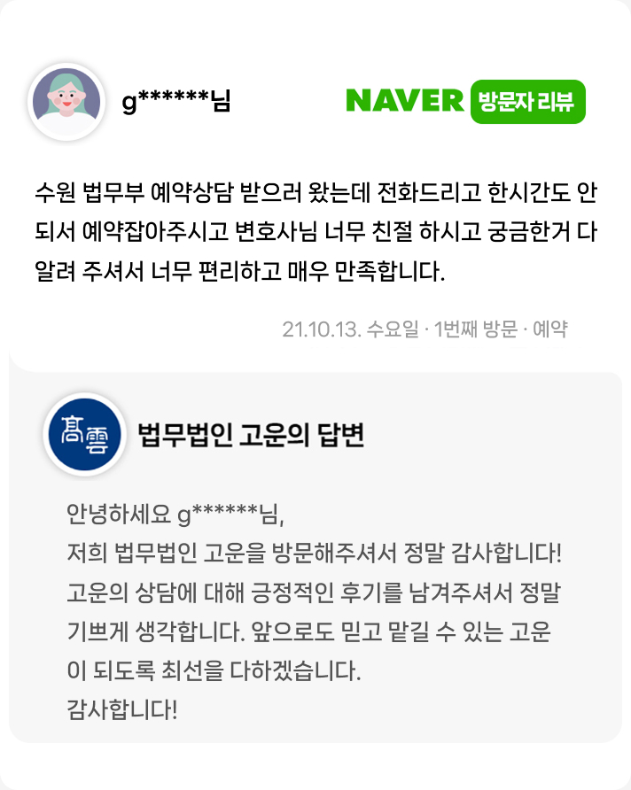 변호사님 너무 친절 하시고 궁금한거 다 알려 주셔서 너무 편리하고 매우 만족합니다.