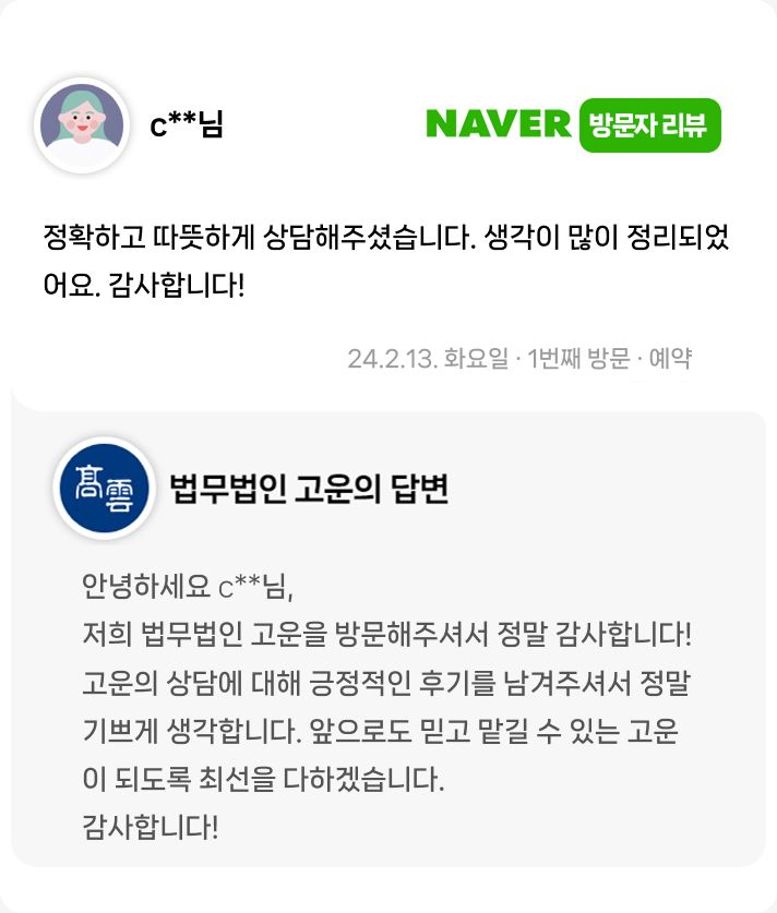 정확하고 따뜻하게 상담해주셨습니다. 생각이 많이 정리되었어요. 감사합니다!