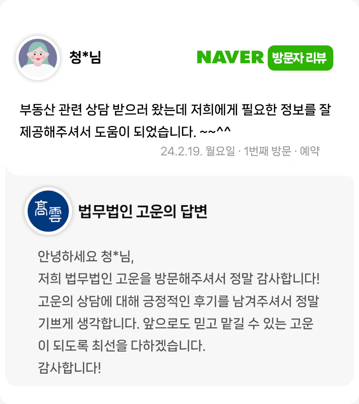부동산 관련 상담 받으러 왔는데 저희에게 필요한 정보를 잘 제공해주셔서 도움이 되었습니다. ~~^^