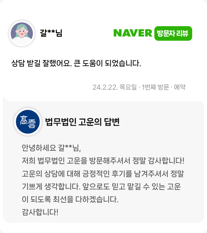 법률 상담은 얼굴을 마주하고 이야기할 때 숨겨진 사실도, 말하지 못한 감정도 함께 풀어낼 수 있습니다. 당신의 이야기를 제대로 듣기 위해 고운은 방문 상담을 원칙으로 합니다 홈페이지에서 편하게 예약하실 수 있습니다.