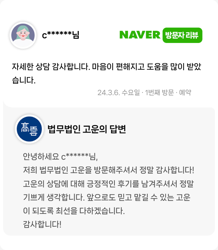 자세한 상담 감사합니다. 마음이 편해지고 도움을 많이 받았습니다.
