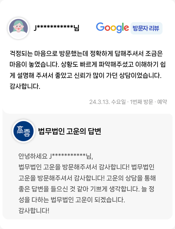 상황도 빠르게 파악해주셨고 이해하기 쉽게 설명해 주셔서 좋았고 신뢰가 많이 가던 상담이었습니다. 감사합니다.