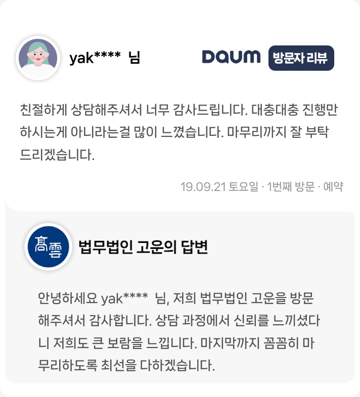 친절하게 상담해주셔서 너무 감사드립니다. 대충대충 진행만 하시는게 아니라는걸 많이 느꼈습니다. 마무리까지 잘 부탁 드리겠습니다.