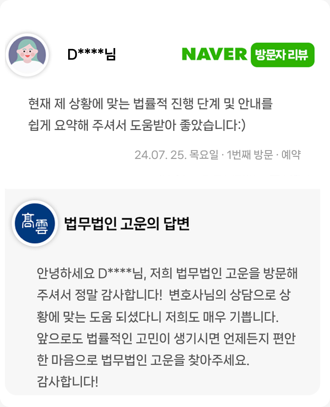현재 제 상황에 맞는 법률적 진행 단계 및 안내를 쉽게 요약해 주셔서 도움받아 좋았습니다:)