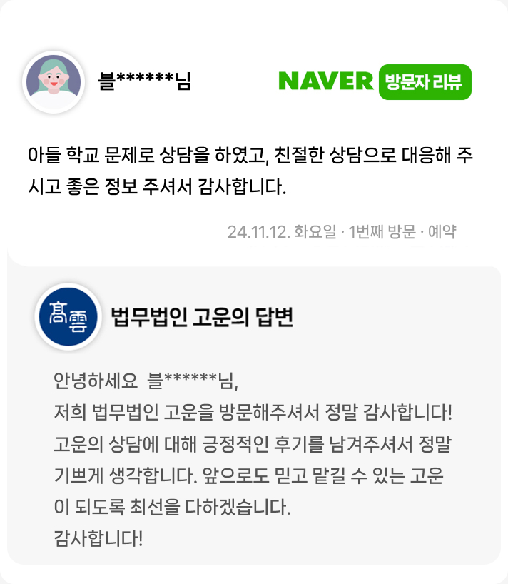 아들 학교 문제로 상담을 하였고, 친절한 상담으로 대응해 주시고 좋은 정보 주셔서 감사합니다.