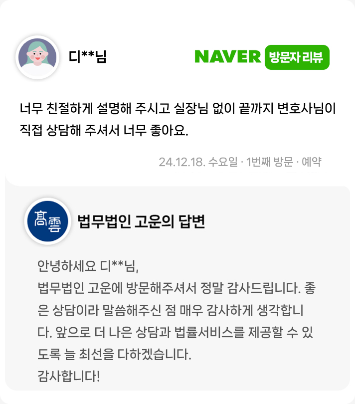 너무 친절하게 설명해 주시고 실장님 없이 끝까지 변호사님이 직접 상담해 주셔서 너무 좋아요.