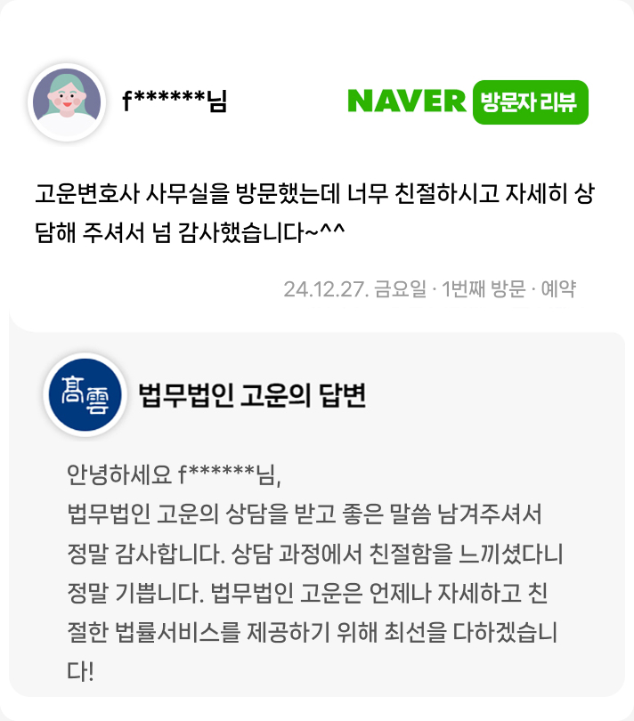 법률 상담은 얼굴을 마주하고 이야기할 때 숨겨진 사실도, 말하지 못한 감정도 함께 풀어낼 수 있습니다. 당신의 이야기를 제대로 듣기 위해 고운은 방문 상담을 원칙으로 합니다 홈페이지에서 편하게 예약하실 수 있습니다.