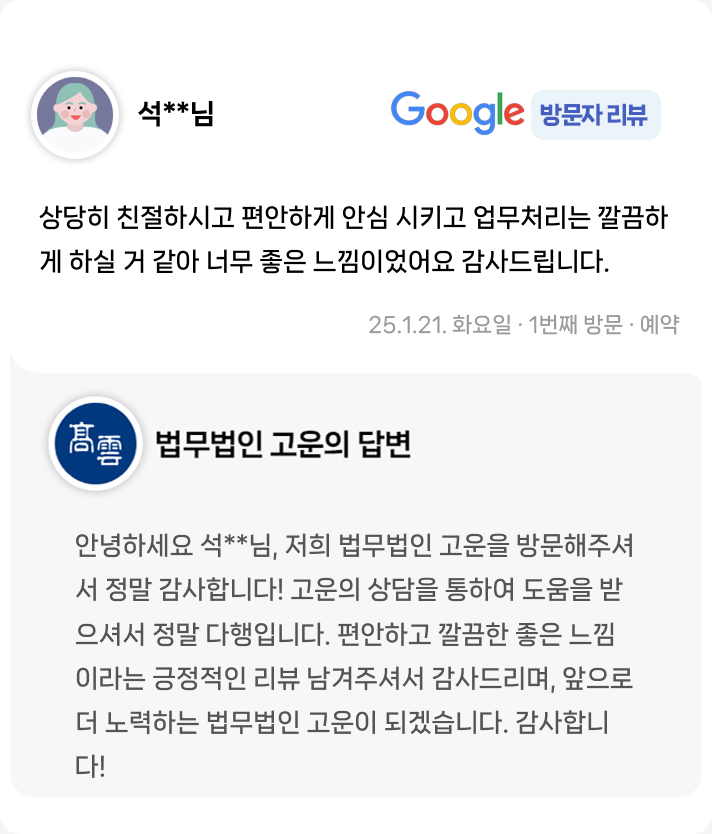 고운은 방문 상담을 원칙으로 합니다