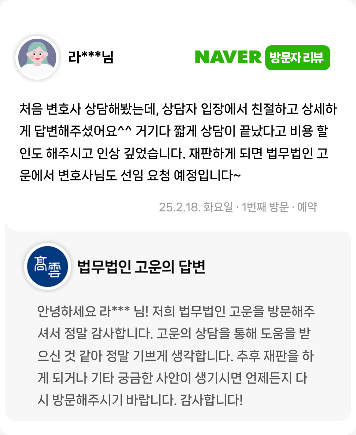처음 변호사 상담해봤는데, 상담자 입장에서 친절하고 상세하게 답변해주셨어요.