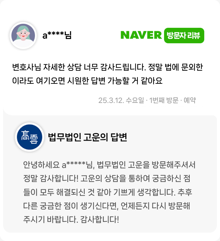 변호사님 자세한 상담 너무 감사드립니다. 정말 법에 문외한이라도 여기오면 시원한 답변 가능할 거 같아요