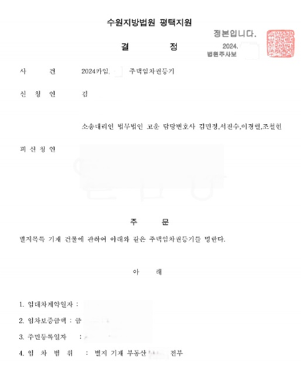 (위 임차권 등기명령신청은 실제로 법무법인 고운이 진행한 사건입니다)