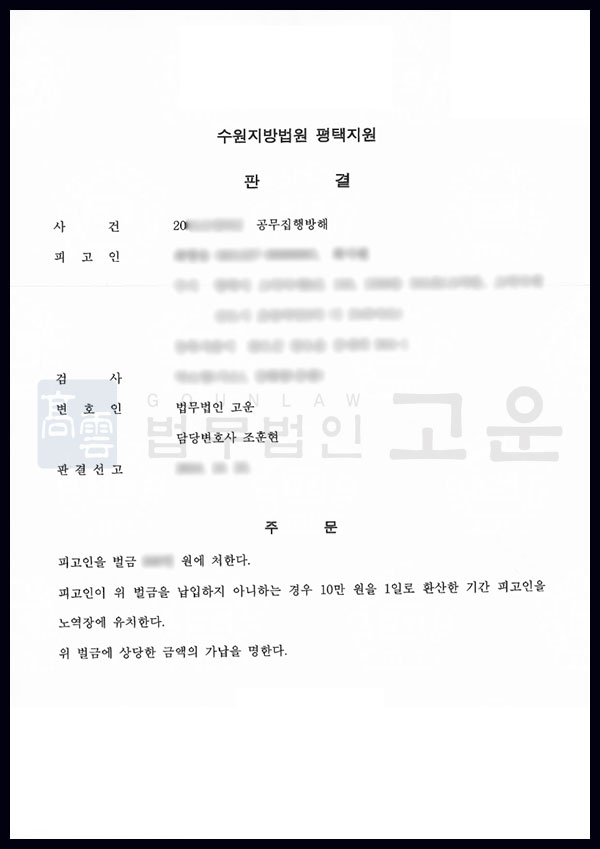 결국 A는 공무집행방해 혐의로 조사를 받았는데, 혐의가 인정되어 구공판 기소되었고, 재판을 앞두게 되었습니다. A는 중한 형사처벌을 받을 위기에 놓이게 되었고, 고운 형사 전담팀을 찾아 상담을 받고, 사건을 의뢰하게 되었습니다.