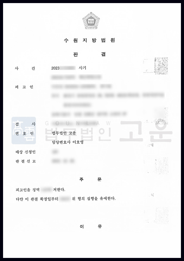 그 결과 재판부는 법무법인 고운의 주장을 받아들였고, 고운을 통해 피해자들에게 진심어린 사과를 전달하고 합의에 도달한 점을 감안하여 A에게 실형이 아닌 집행유예 판결을 내렸습니다. 보이스피싱 현금 수거책의 경우 적극적인 가담한 것이 아니라고 할지라도 피해자가 다수 발생할 경우 실형을 받을 가능성도 있으나, 고운의 조력으로 실형을 피해 집행유예 결과가 나왔다는 것에 의미가 있는 사건이었습니다.