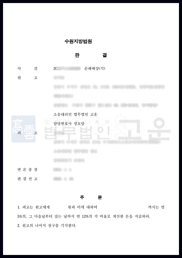 책임을 회피하는 업체의 행동으로 A는 다친 것도 모자라 치료비도 전액 본인이 부담하는 처지가 될 가능성이 있었으나, 고운의 조력으로 치료비와 위자료까지 지급받게 되어 의미가 있는 사건이었습니다.