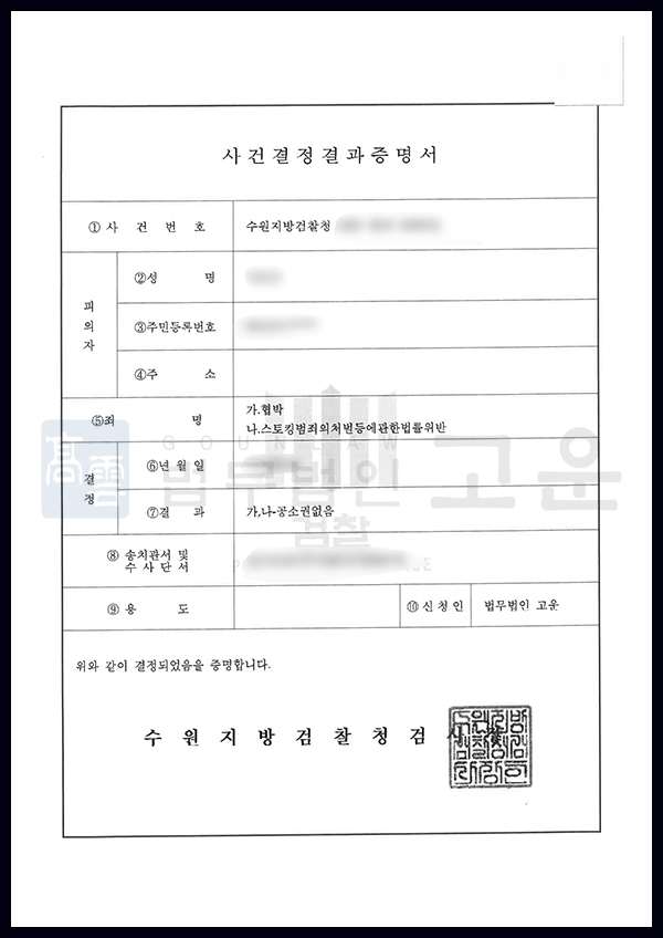 이에 B씨는 참지 못하고 A씨를 스토킹 및 협박 혐의로 경찰에 신고하였습니다. A씨는 뒤늦게 용서를 빌었지만 B씨는 대답이 없었고, 결국 A씨는 법률적인 조력을 받고자 법무법인 고운 형사사건전담팀을 찾아주셨습니다.
