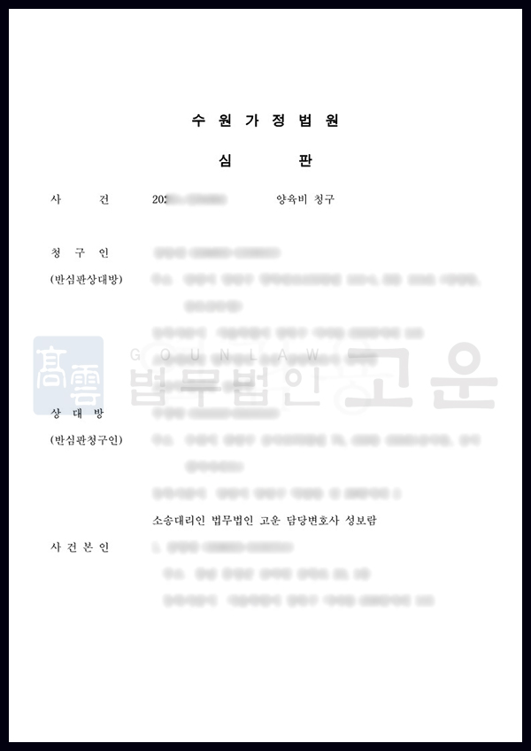 그런데 어느 날 B씨는 자신의 경제 사정이 어려운데, A씨는 수입도 있고 경제적 여유도 있어 보이니 양육비를 증액해야겠다며 양육비 증액을 청구 절차를 진행했습니다. A씨는 B씨의 요구에 대응하기 위해 법무법인 고운 가사사건 전담팀을 찾아 사건을 의뢰하였습니다.