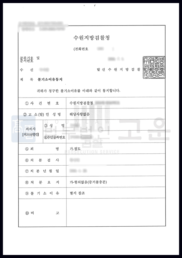 피해 마트의 평소 결제 내역 및 CCTV화면 등의 소명자료가 A의 진술과 부합하고, 소득상태로 보아 소액의 피해품을 절취할 만한 동기가 없어 보이는 점 등을 들어 검사를 설득하였고, 결국 검찰로부터 혐의 없음의 불기소(무혐의) 처분을 이끌어 내었습니다.