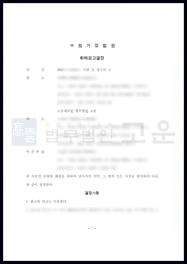 지속적인 폭언과 폭행으로 극심한 정신적 고통을 겪던 의뢰인 A는 배우자의 이혼 거부로 어려움을 겪다 법무법인 고운에 도움을 요청했습니다. 고운은 메시지 내역과 증언 등을 통해 재판상 이혼 사유를 입증하고, 조정·화해권고 절차에서 A에게 유리한 방향으로 대응했습니다. 그 결과 이혼 성립과 함께 재산분할에서도 만족스러운 결과를 이끌어내어, A가 오랜 고통에서 벗어난 사례입니다.