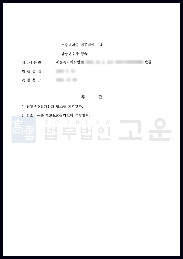 재판부는 법무법인 고운의 주장을 받아들였고, A에게 손해배상 책임이 전혀 없다고 판결하였습니다. B는 판결에 불복하고 항소하였으나, 2심 역시 법무법인 고운의 주장이 받아들여져 결국 사건은 A의 책임이 없는 것으로 마무리 되었습니다.