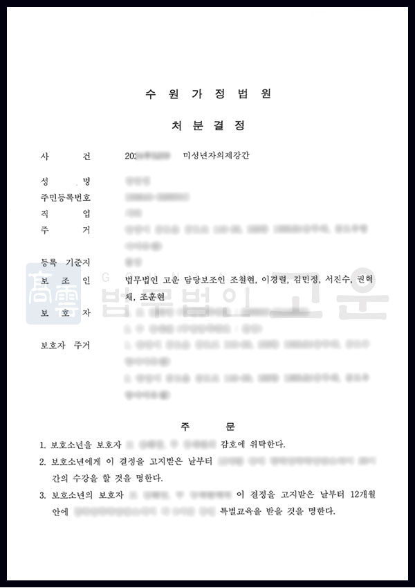 A의 부모는 A가 시설에 수감되는 무거운 보호처분을 받을 가능성이 높은 상황에서, 최선의 결과를 이루어냈다는 사실에 매우 만족하며, 고운 성범죄전담팀 변호사님들에게 감사를 표했습니다.
