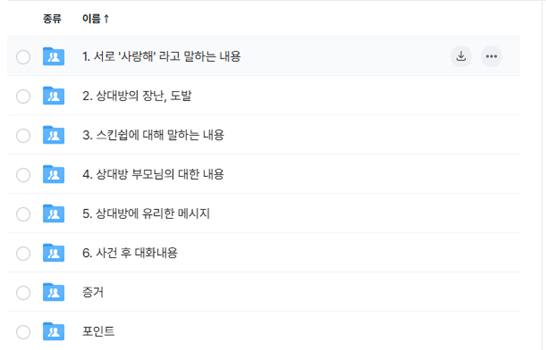 [담당 변호사가 AㆍB 사이 모든 메시지를 분류하여 저장한 모습]