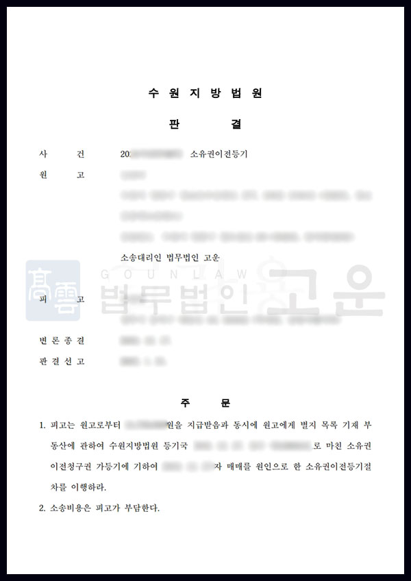 법원은 법무법인 고운의 주장을 받아들였고, B로 하여금 소유권 이전등기 절차를 이행하라는 판결을 내렸습니다.