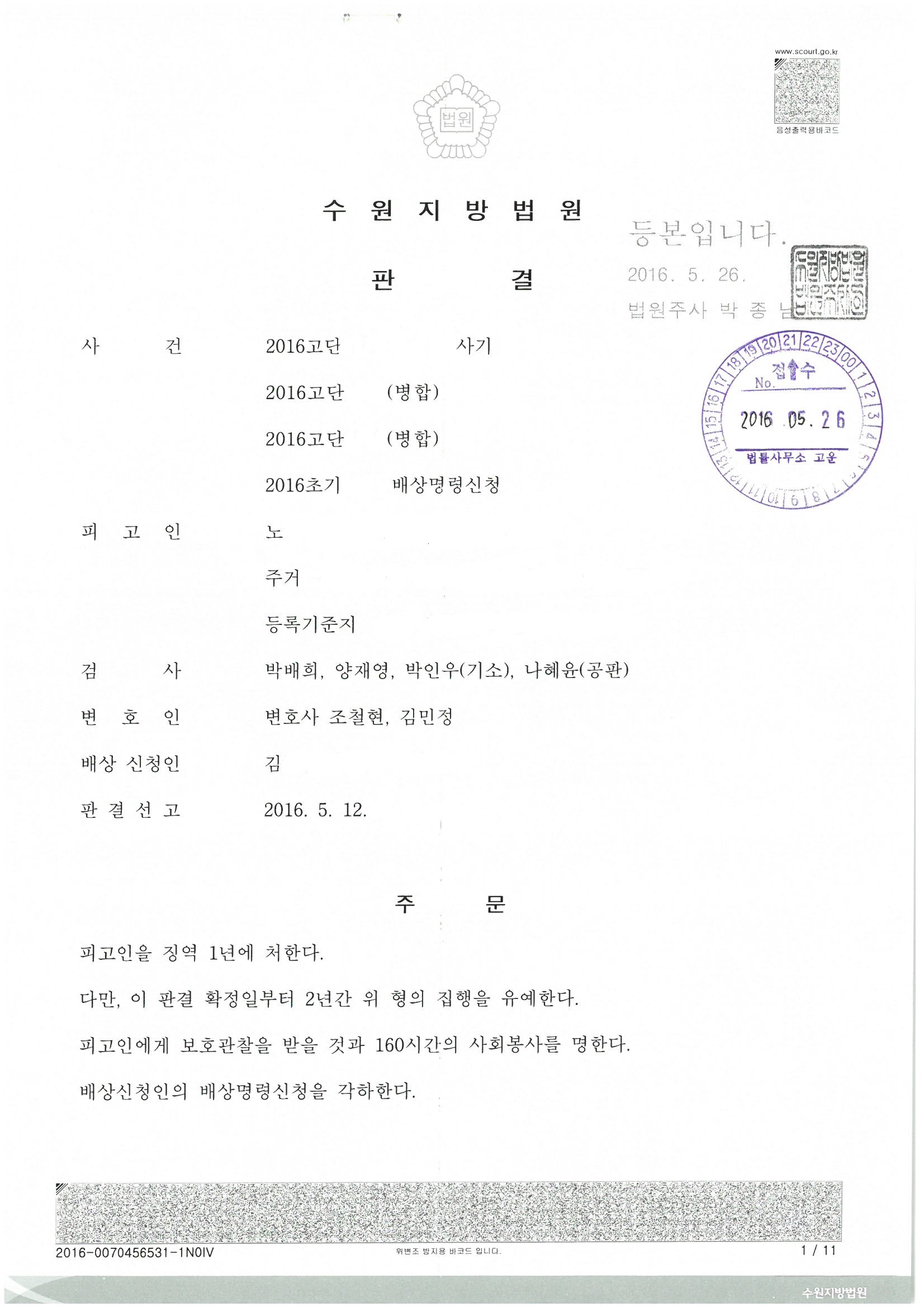 집행유예판결을 이끌어 낼 수 있었습니다.