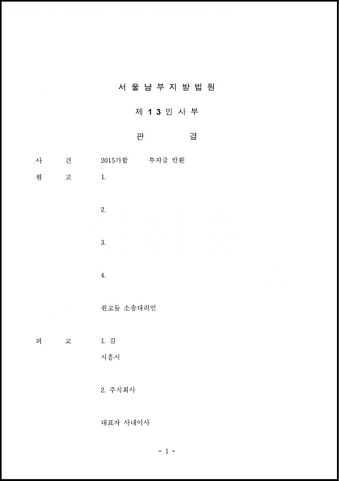 원고 4인은은 피고들(의뢰인)을 상대로 201,000,000원의 투자금을 연대하여 지급(반환)하라는 소를 제기하였습니다.