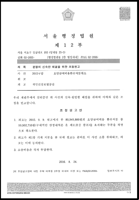 최종적으로 법원은 원고의 주장대로 원처분에서 2000만원 이상 줄어든 금액으로 조정권고를 하였고 피고가 이를 받아들여, 조정권고안이 확정되었습니다.