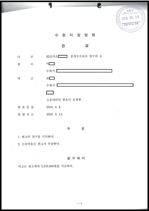 공인중개사인 원고는 자신이 매물을 최초로 소개하였다는 이유로 피고들인 매수인과 매도인에게 각 중개수수료를 청구하였습니다.