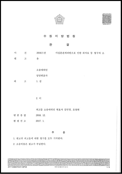 이에 법무법인 고운은 피고(의뢰인)을 대리하여 1년여 간의 소송기간 동안 최선을 다하여 변론을 하였고, 결국 원고청구기각 판결을 받아 전부승소의 결과를 이끌어 냈습니다.