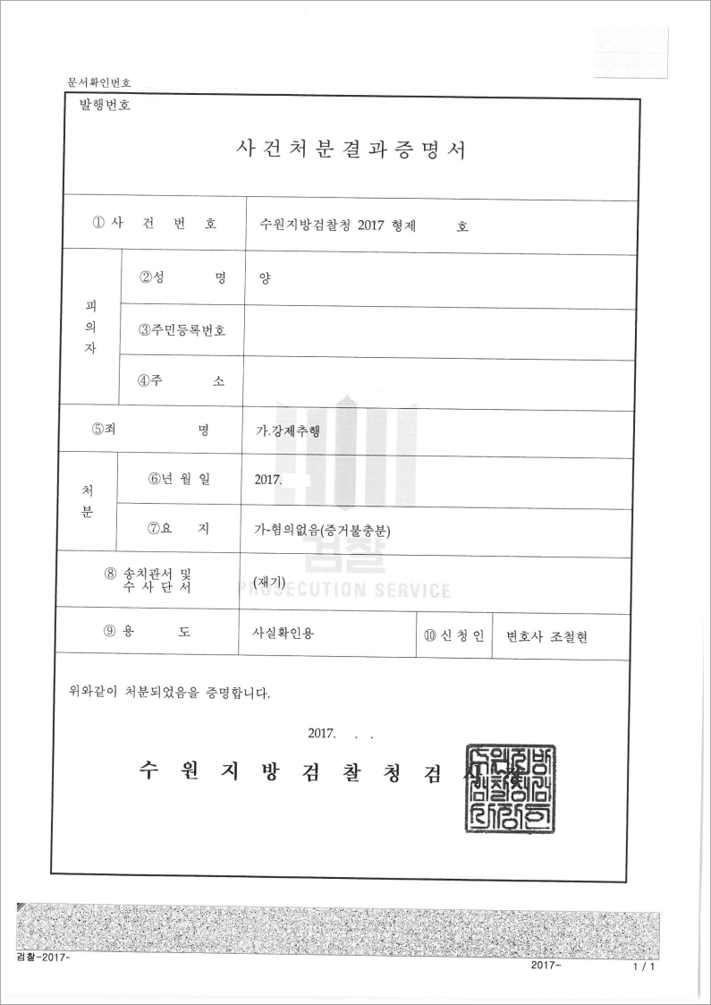 이에 법무법인 고운은 피의자가 행동한 부분에 대하여 유리한 점과 평소 학급에서의 성실한 생활정도 등을 적극적으로 부각시켰고, 결국 검찰에서 혐의없음 처분을 이끌어 냈습니다.