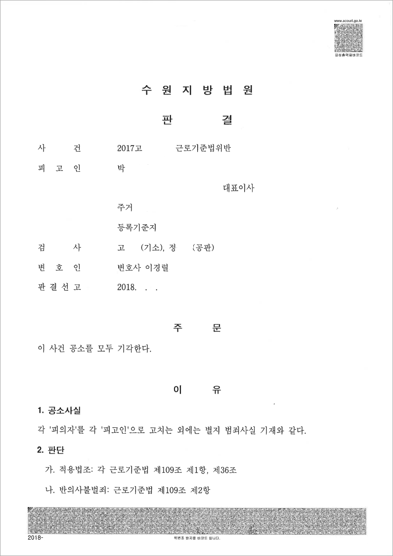 피고인은 피해자들에게 임금을 지급하지 않은 사실이 있어 무죄 취지로 주장하기에는 쉽지 않았습니다.