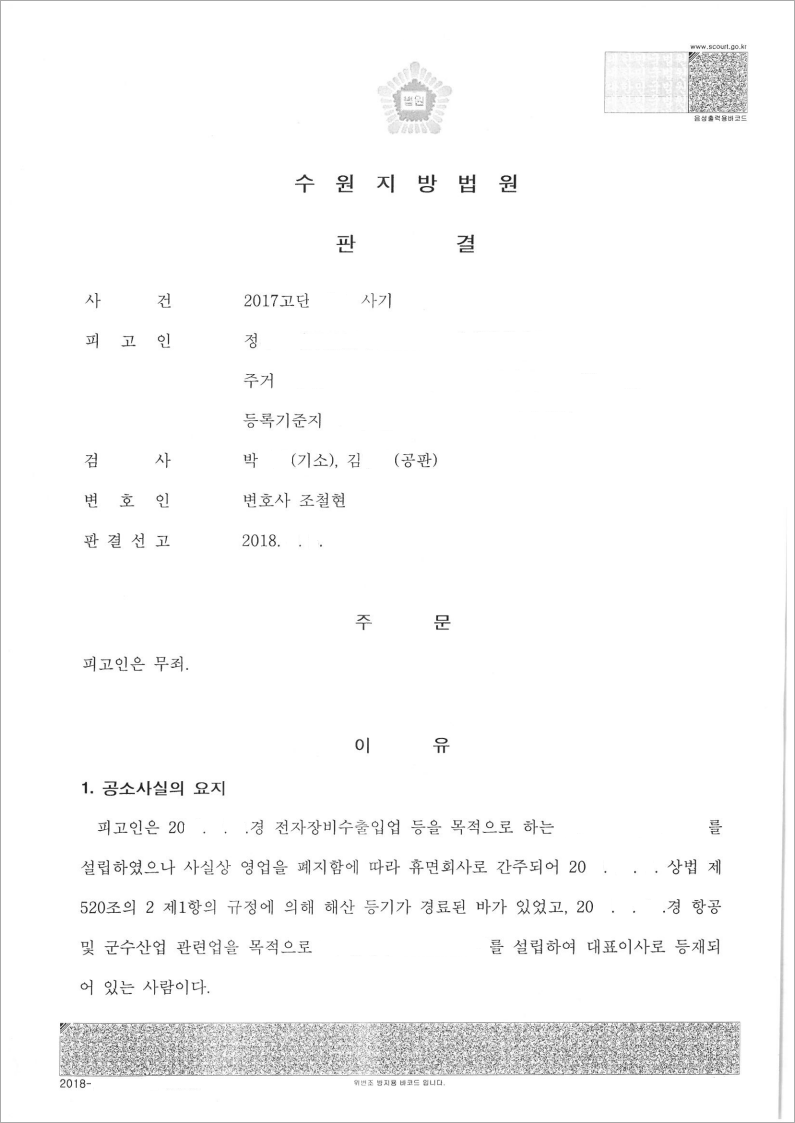 고소인은 방위산업과 관련하여 피고인에게 상당한 액수의 금원을 빌려주었으나 피고인이 변제하지 않아 피고인을 상대로 사기로 고소를 하게 되었다고 주장하였고, 이에 검찰은 피고인을 사기죄로 기소하였습니다.