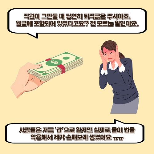 이렇게 상대방은 의뢰인에게 매달 퇴직금조로 돈을 더 받아놓고는, 퇴사를 하고 나서는 갑자기 퇴직금 분할약정의 효력을 무효로 보는 근로기준법 조항을 들어 퇴직금을 또 받겠다고 소송을 걸어온 것이었습니다.