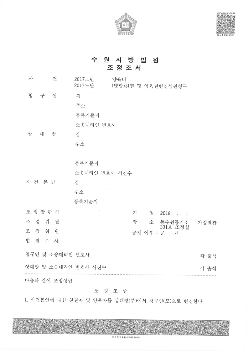 이에 법무법인 고운은 의뢰인이 자녀를 양육한 기간이 얼마나 되는지, 양육비를 지급하기로 약정한 사실이 있는지 등을 면밀히 검토하고 관련 증거를 수집하여 재판부에 입증하였고, 이를 통하여 의뢰인은 아내에게 과거 양육비로 1,000만원을 지급하는 것으로 조정을 이끌어 냈습니다.