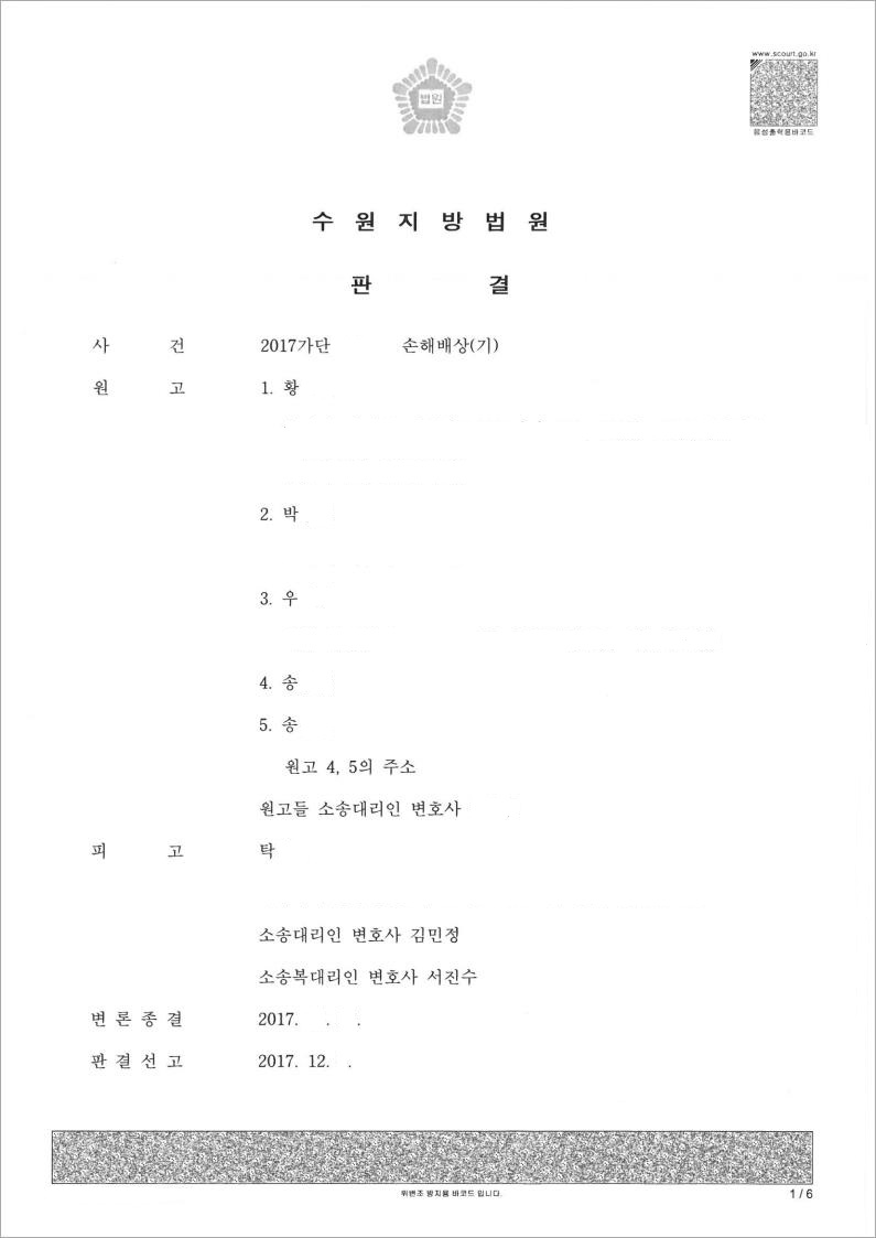 저희 법무법인 고운에서는 피고를 대리하여 소송을 진행하였고, 원고측의 주장에 대한 사실상 및 법률상의 부당함을 주장하여, 그 결과 피고 전부승소 판결을 이끌어 냈습니다.