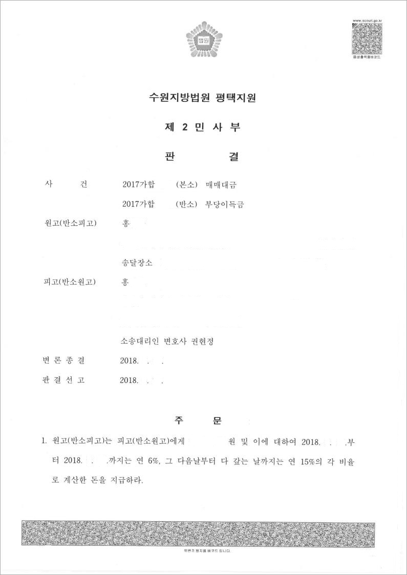 원고는 위 공장 매매대금 지급 방법 등이 통상의 매매대금 지급과 상이한 것을 이유로, 이미 매매대금을 모두 지급한 피고에게 이 사건 소를 제기하였으나, 법무법인 고운에서 원고 주장의 부당한 부분을 적극적으로 밝히고, 피고 주장이 사실임을 입증하여 원고 패소 판결과 오히려 더 지급된 금액을 부당이득금으로 받는 등 만족스러운 결과를 이끌어 냈습니다.