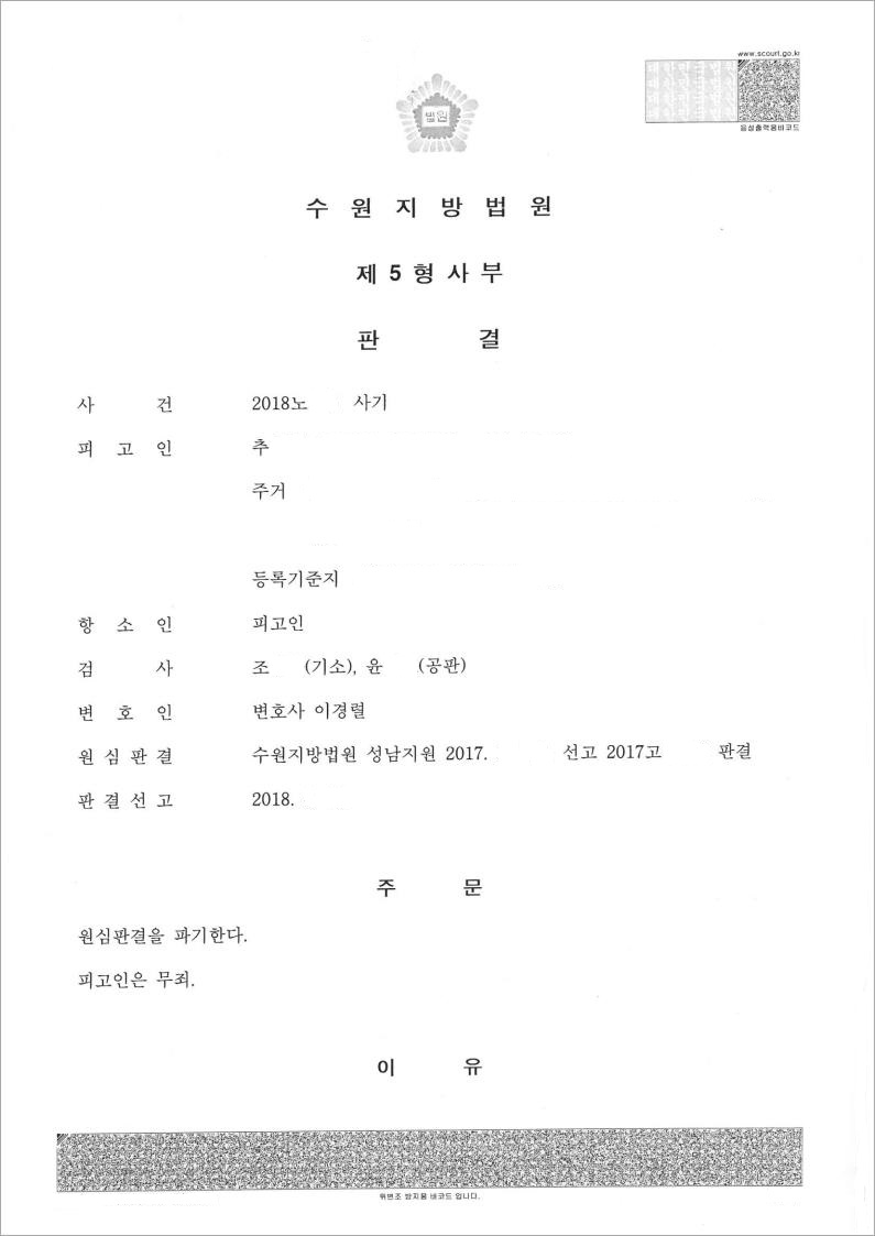 이미 1심판결이 난 상태라 어려운 점이 많았으나, 저희 법무법인 고운은 수사단계와 1심변론 단계에서의 문제점을 분석한 후 위 사건에 대하여 항소를 제기하였고, 피고인에 대하여 다시 한번 적극적으로 항변을 하였습니다.