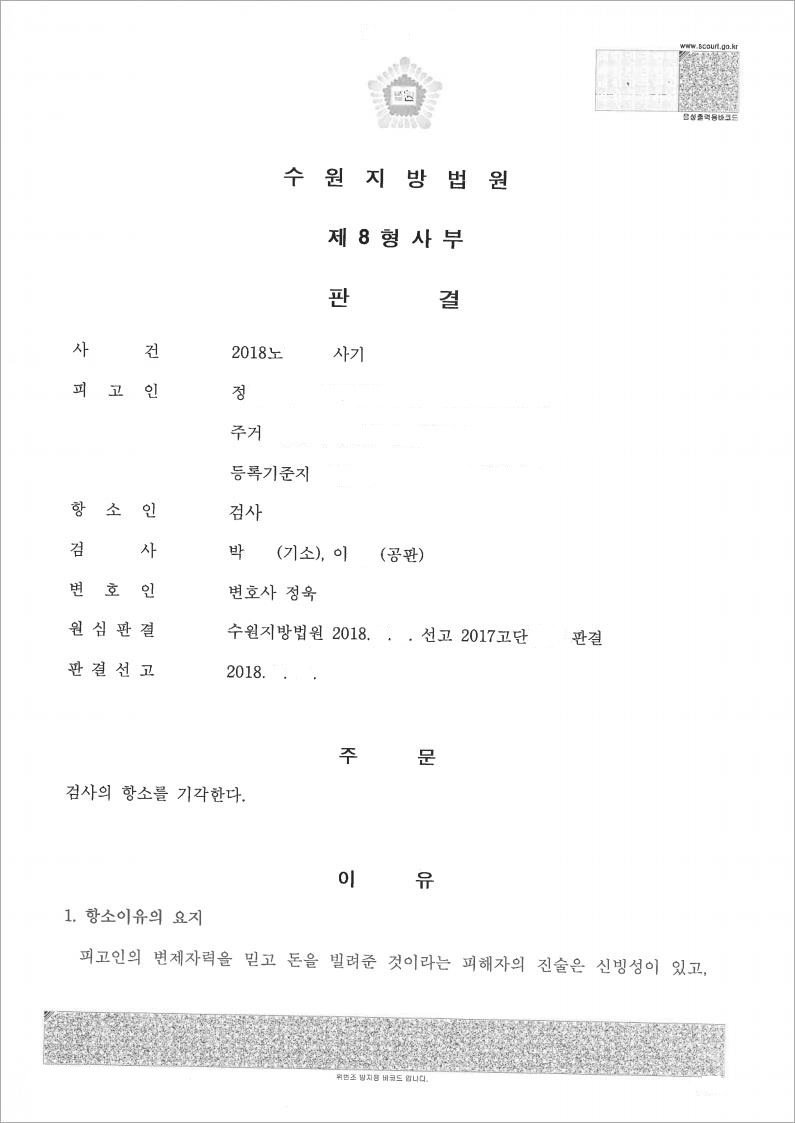 그러나 법무법인 고운은 피고인에 대하여 적극적인 변론을 통하여 무죄를 선고받았습니다.