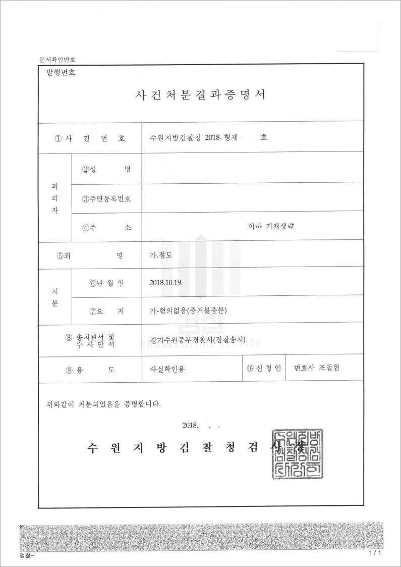 저희 법무법인 고운은 검찰에 유일한 증거인 CCTV의 사각지대를 분석·제출하고 거짓말탐지기의 증거능력을 적극적으로 다툼으로서, 최종적으로 검찰로부터 의 혐의없음의 종결처분을 받아냈습니다.