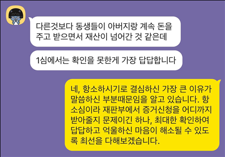 불만족스러운 유류분 1심 결과에 고운을 통하여 항소를 진행하고, 만족스러운 판결을 받은 사례