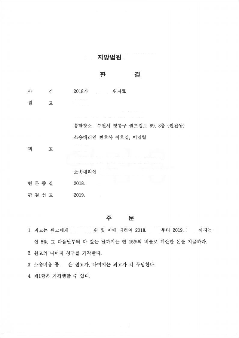 법무법인 고운은 오랫동안 재판을 하면서 재판부에 적극적인 변론을 통해 설득하였고, 추가적인 입증으로 결국, 위자료 청구금액의 대부분을 인정받는 판결이 선고되었습니다.