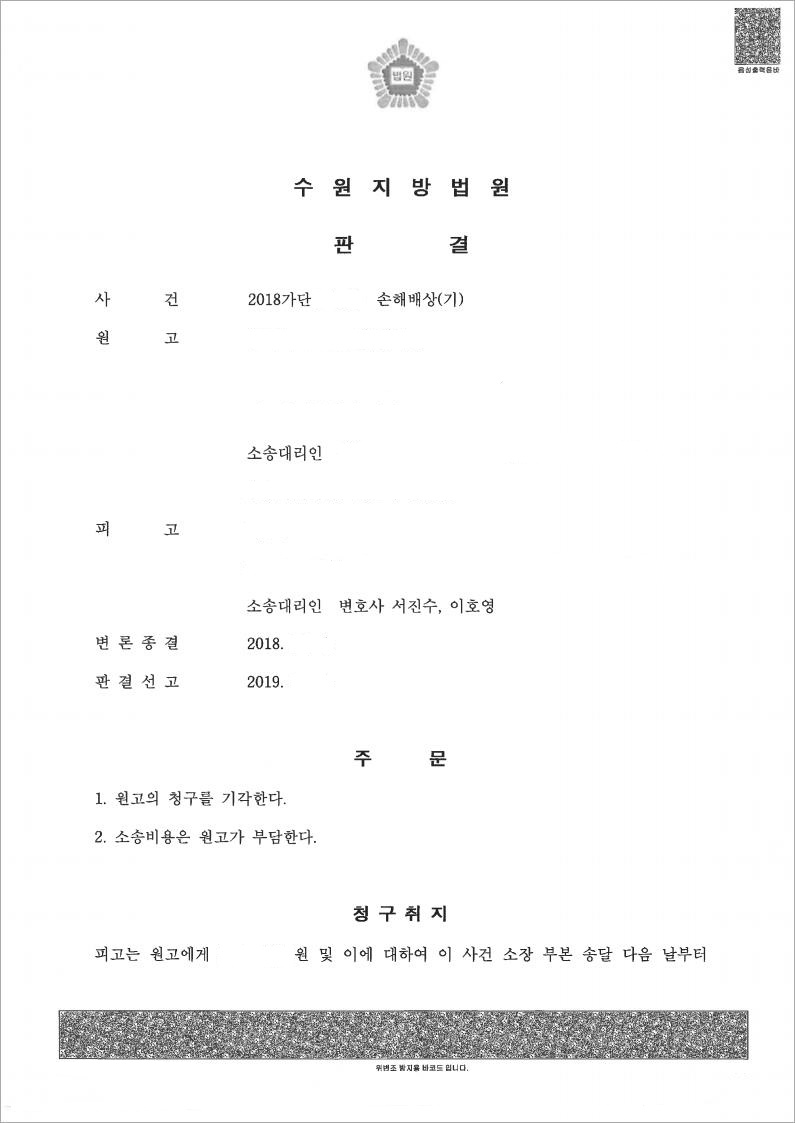 재판부는 매출액 감소부분이 의뢰인의 책임이 아니라는 주장을 받아들였고, 결국, 원고의 청구를 기각한다는 판결을 선고 받아 의뢰인의 만족스러운 결과을 이끌어 냈습니다.