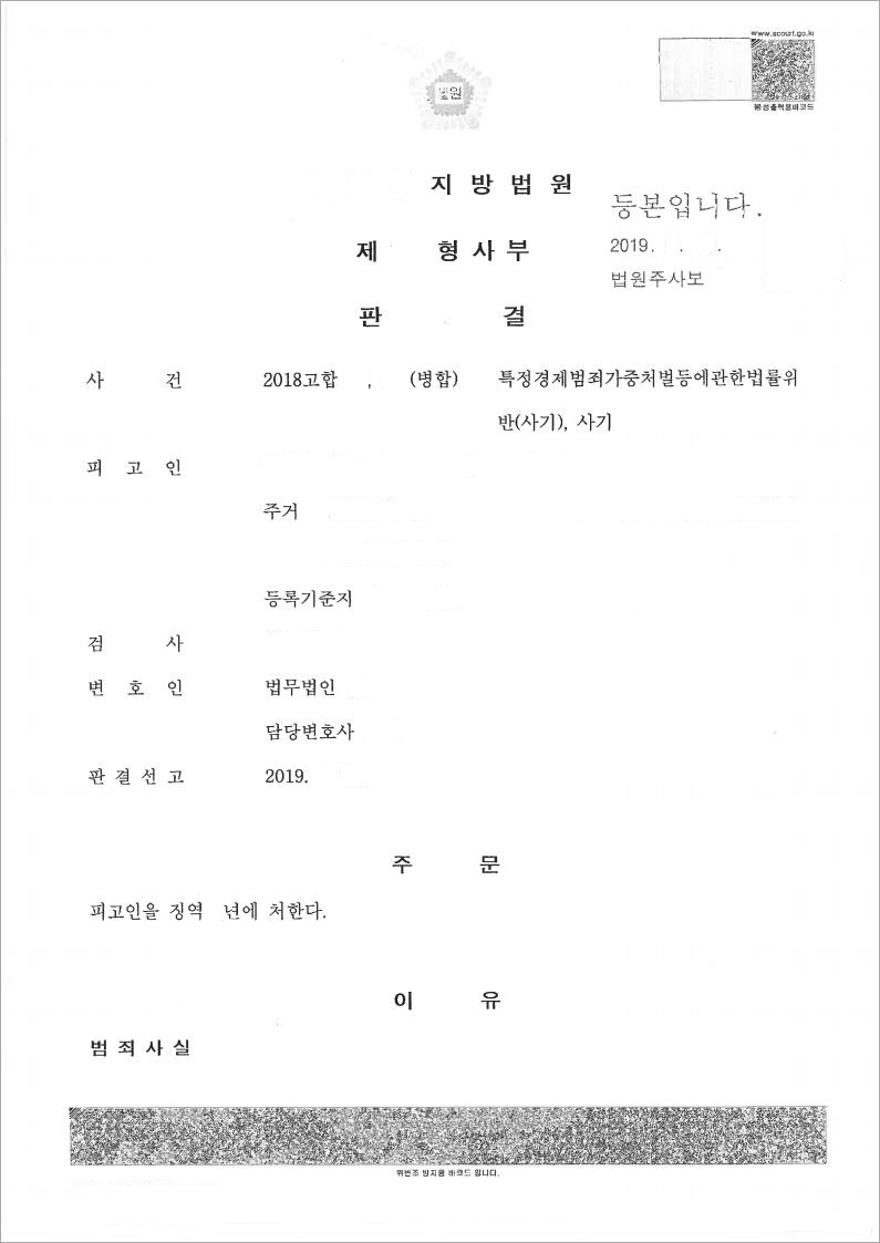 그러나 법무법인 고운은 사건 재판부에 추가 증거자료와 의견개진을 통해 설득을 하였고, 결국 재판부는 A씨에 대하여 검사가 구형한 최고 형량의 징역형을 선고하였으며, 의뢰인의 만족스러운 결과를 얻게 되었습니다.