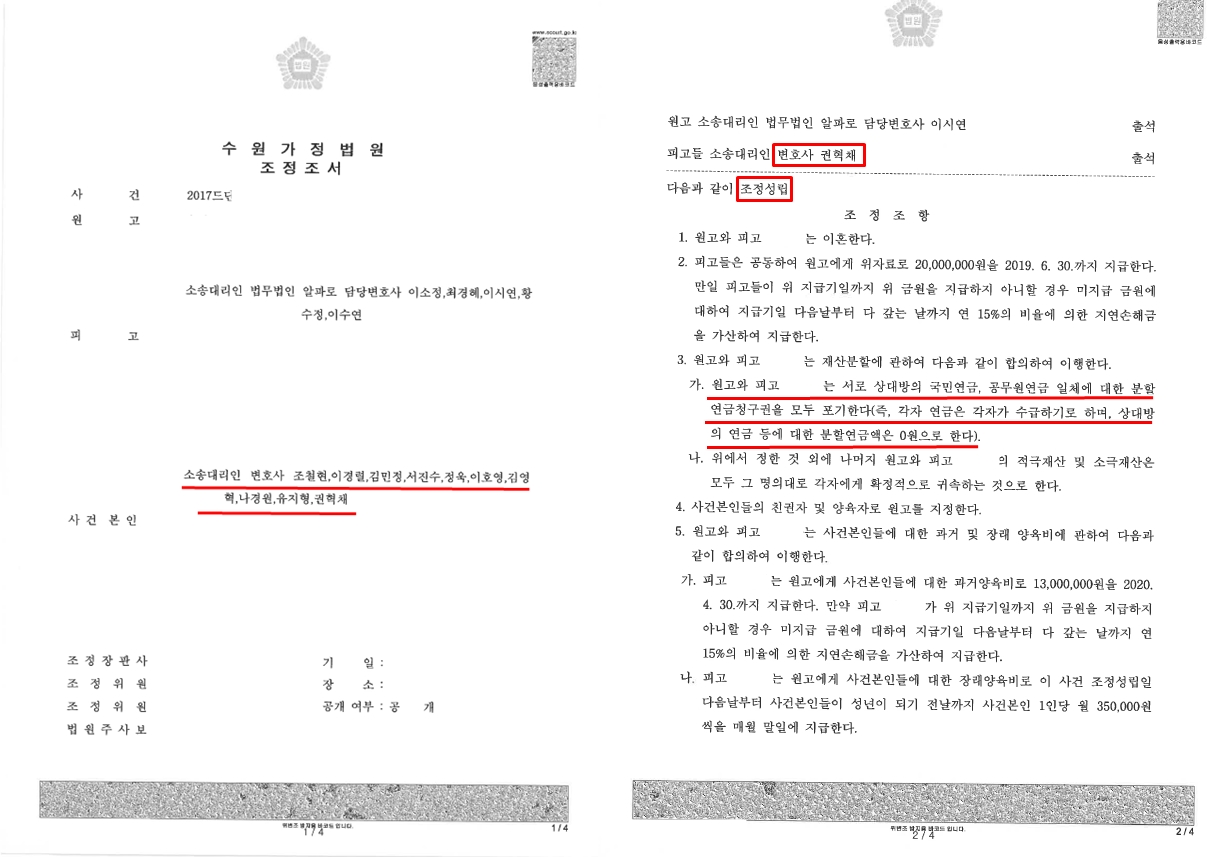 원고가 주장한 억대의 재산 분할은 하지 않고 부정행위에 대한 위자료 및 양육비만 지급하는 것으로 원만히 조정하여 사건을 종결하였습니다.